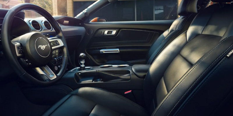 <p>Depending on the model you choose, the 2019 Ford Mustang comes with two available engines. The EcoBoost models are equipped with the 2.3-liter EcoBoost engine that delivers up to 310 horsepower and 350 pound-feet of torque. It features turbocharged, direct injection and twin independent variable cam timing giving you an adrenaline rush every time your foot hits the gas. This engine is paired with a 6-speed manual transmission.</p> <p>The other four models are loaded with a 5.0-liter Ti-VCT V-8 engine that offers 460 horsepower and 420 pound-feet of torque. Paired with a 6-speed manual transmission with rev matching, you're sure to experience tire-squealing power the second you take this engine for a spin. Every model except for the Bullitt has the option of a 10-speed SelectShift automatic transmission for those who prefer to relax and just ride.</p>