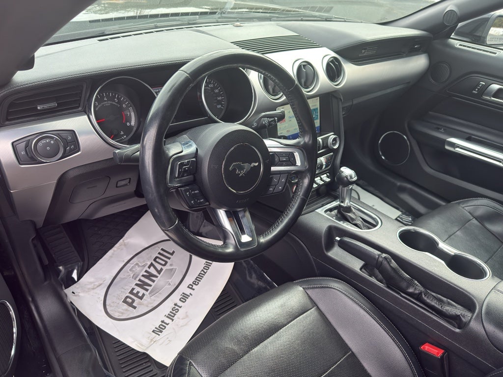 This model offers Android Auto for seamless smartphone integration. The leather seats in the vehicle are a must for buyers looking for comfort, durability, and style. This Ford Mustang offers Apple CarPlay for seamless connectivity. Start this model from inside with remote start. Bluetooth® technology is built into this model, keeping your hands on the steering wheel and your focus on the road. The rear parking assist technology on this model will put you at ease when reversing. The system alerts you as you get closer to an obstruction. See what's behind you with the back up camera on the Ford Mustang. This unit offers Automatic Climate Control for personalized comfort. Set the temperature exactly where you are most comfortable in this Ford Mustang. The fan speed and temperature will automatically adjust to maintain your preferred zone climate. This model is rear wheel drive. This small car has an elegant black exterior finish.